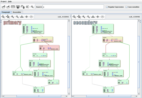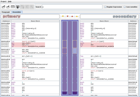3. For those that prefer a more conventional side-by-side assembly listing, zynamics BinDiff also has a visualisation mode: