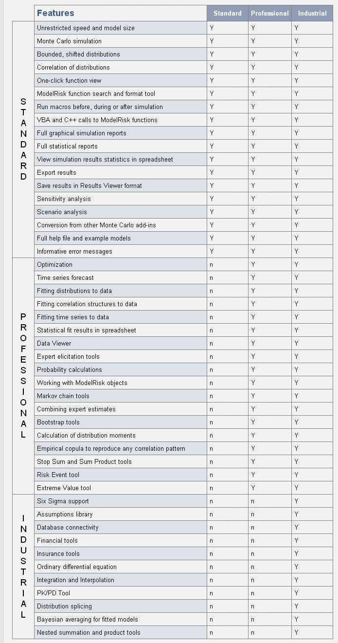 ModelRisk Industrial (IND):adds a range of advanced features to the Professional version that help solve common, more complex problems specific to various industries.